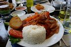 Ceviche de corvina, pisco sours, chita al ajo, lenguado a la chorrillana, tejas, chicha morada, Inca cola (the true soft drink of the Incas), chupe de camarones, algarrobina, cerveza Cusqueña, crema de lucuma. I didn't actually taste all of that but I trust my daddy when he tells me that it's all great. What I did try for the first time was ice cream, lucuma ice cream, and I was instantly convinced of the goodness of this earth!