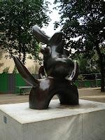 The park itself is quite small. Several benches, a granite ping-pong table and a large bronze statue by Joan Miró (his studio was in a building that gave way to the Square).
